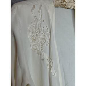 WR II VTG Kimono Duster Women SZ 14 Cream Career Floral Accent Boho Flowy