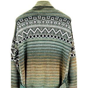 VTG Kings Road Sears Cardigan Mens L Green Cowichan Belted Sweater Western Boho