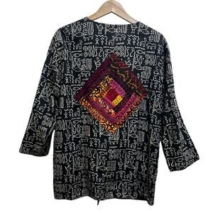 VTG Kisura Designs Eastern Art Handmade 100% Cotton Jacket O/S Patchwork Bohemian 90's Ethnic Indie Festival Art To Wear.
