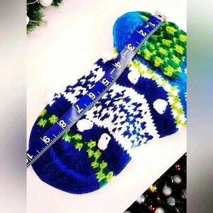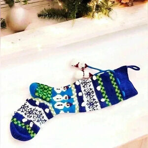 VTG Knit Christmas Stocking Snowman Blue Green Snowman Tassels Crochet Yarn