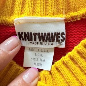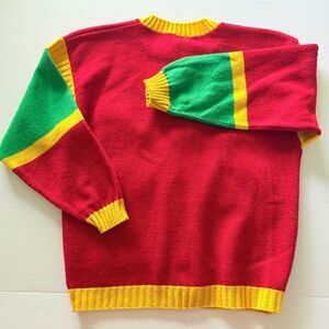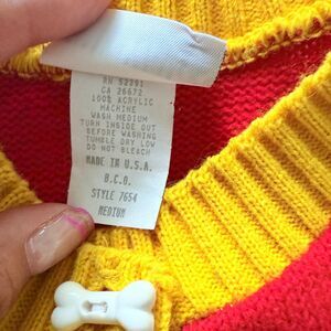 VTG Knitwaves USA Colorful Fuzzy Knit Dog Bone Button Statement Kids Cardigan M