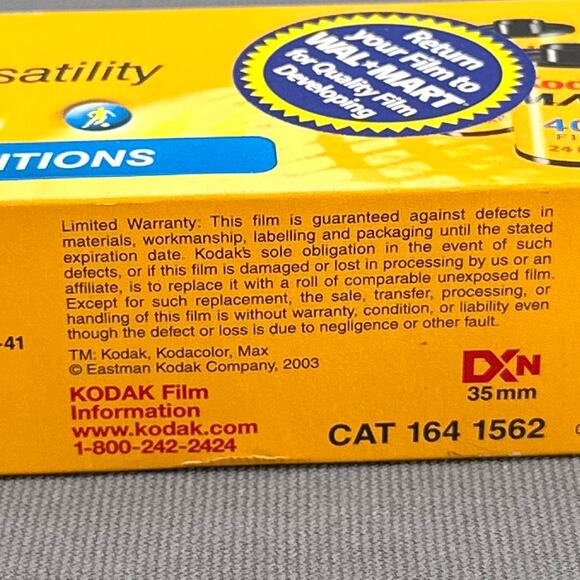 • Kodak box dated “Develop Before 07/2007”; Seattle FilmWorks roll dated “Use by 10/2001”