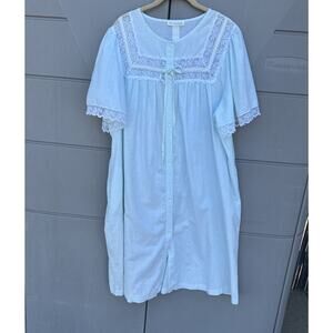 VTG Komar House Coat Robe Pale Blue Textured Light Weight Button Front L READ