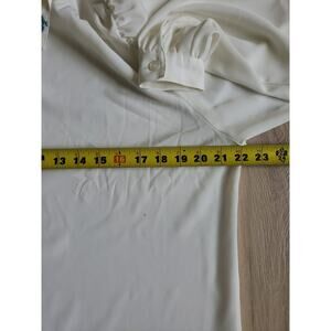 VTG Blouse Koret Womens 12 Ivory Embroidered Pearl Button Sheer Structured Top - W/ Shoulder Pads