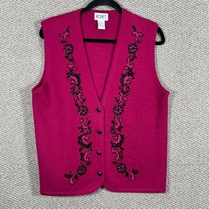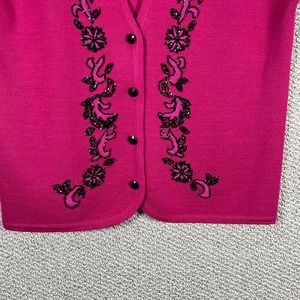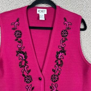 Vintage Koret Sweater Vest Womens Medium Pink Wool Blend Beaded Sleeveless V-Neck Knit