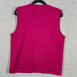 VTG Koret Sweater Vest Medium Pink Wool Blend Beaded Sleeveless V-Neck Knit