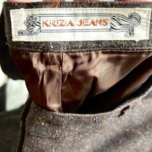 VTG Krizia Jeans, Y’all… these are SO COOL! TRULY VINTAGE! FUNKY open front legs, all eyes will be on you!! (Fits like an 8 Regular not a size 10). Vintage Krizia Jeans Italian Wool Blend Split Hem Trousers Brown Size 10
