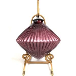 Large Vintage Kugel Midwest Purple Amethyst Ribbed Blown Glass Heavy Christmas Ornament. Made by Midwest of Cannon Falls in the 1970s. Midwest/Seasons of Cannon Falls, is one of the country's leading distributors of giftware. They develop partnerships with exceptional artists, creating exclusive productions of their work. This hand-blown molded glass bulb is rich Amethyst purple and has a ribbed pattern to it. The glass is thick and the color so rich, it is gorgeous! Preowned mint condition. No chips or cracks. Measures app 5" x 4.75". Please see pictures. Stand not included. Will ship Priority Mail with insurance, and packed with care so your item arrives safely. The Legend of Kugels: The early 1800's artistic German heritage brought us Kugels, a gently hand-blown glass bubble. Kugels are marked by a heavy solid weightiness that is visible to the eye. Brightly colored on the outside, Kugels took the form of spheres or molded shapes like grapes and berry clusters, apples, and pears. Today's Kugels carry a nostalgic appeal, taking us back to early Germany. Holiday trees glisten with the character and charm of these old world holiday accents.