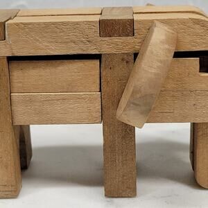 VTG Kumiki Wooden Elephant Interlocking 3D Puzzle Brain Teasers Japanese Signed