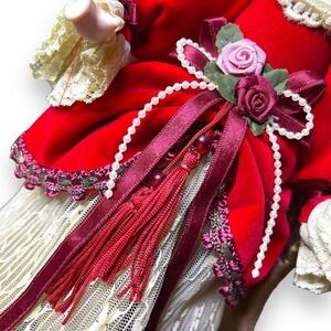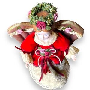 VTG Kurt Adler Angel Tree Topper Large Ornament 1990 Victorian Lace Red Ivory