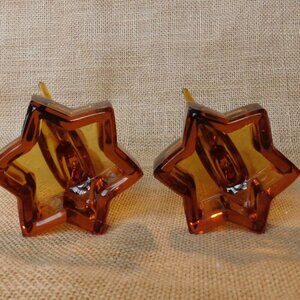 Set of 2  Mid-Century  vintage L.E. Smith Amberina dark gold amber  Angel candle holders.
