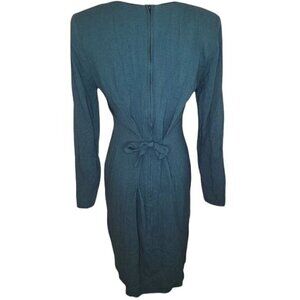 retro 80s houndstooth kelly green button front tie waist secretary cosplay long sleeve knee length vnt career professional 90s costume padded shoulder work office
