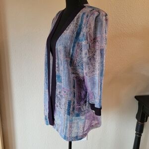 VTG LADY CAROL PETITES Purple Blue Open Front Cardigan Sheer