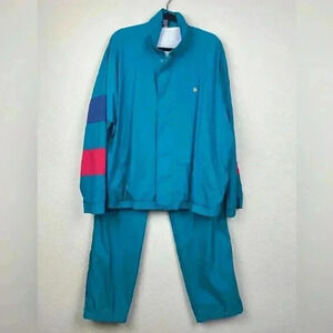 VTG LAND'S END Men's Large Turquoise Blue Track Suit Full Zip Jacket Pants Lined