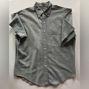 VTG LANDS’ END Men’s Purple and Green Striped Short Sleeve Button Down Shirt L