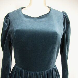 VTG LAURA ASHLEY S M Velour Velvet Whimsigoth Goth Witchy Midi Maxi Teal Dress