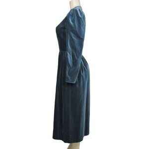 Channel vintage elegance with this vintage LAURA ASHLEY Velour Velvet Cottagecore Prairie Midi Maxi Tea Dress in a striking teal blue-green with puffed sleeves.