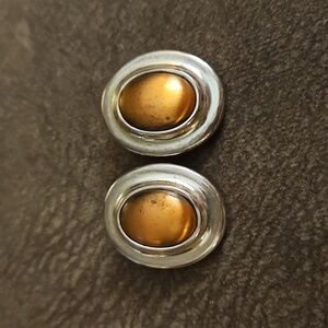 VTG LAUREN CONRAD 1990s Two-tone Oval Beaded Necklace Clip-on Earrings Set