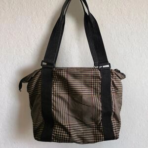 VTG LAUREN Ralph Lauren Bag Nylon Beige Black Houndstooth Purse Buckle Tote Y2K