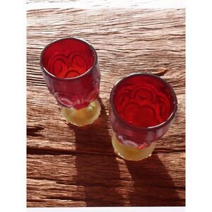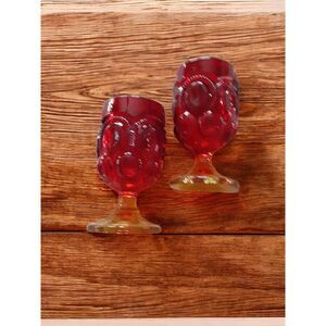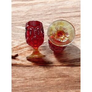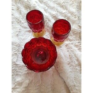 VTG LE Smith Moon And Star Amberina Two Glass Goblets And 6" Candy Dish