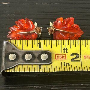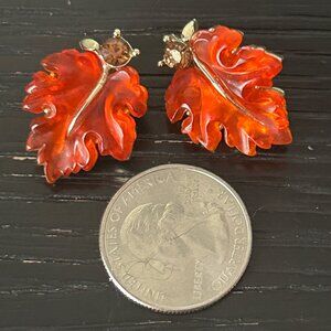 VTG LISNER Leaf Clip-On Earrings Gold Tone & Orange Molded Glass Fall Accessory