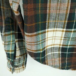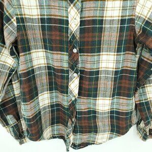 VTG L.L. Bean 100% Cotton Plaid Flannel Button Shirt S/M Cream/Green/Brown