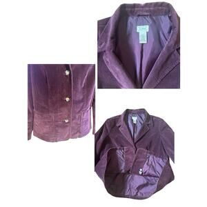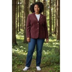 VTG L.L. Bean Burgundy Wine Corduroy Blazer Jacket Women's 18 Reg Button Up