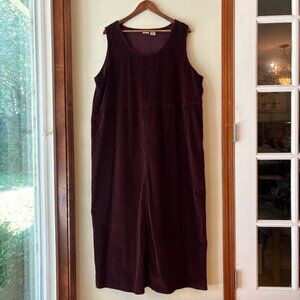 VTG L.L. Bean Corduroy Jumper Dress Sleeveless Maxi Cotton Blend Burgundy Red Plus Size 20W