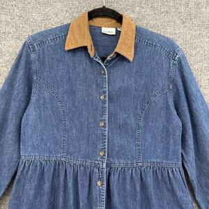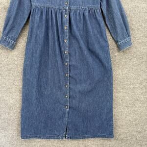 VTG LL Bean Denim Maxi Dress Womens 4 Collared Button Up Modest Country Cottage