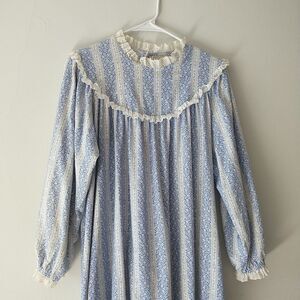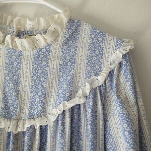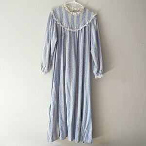 VTG LL Bean Lanz Nightgown L*Tyrolean Floral Striped Flannel Ruffle Cottagecore