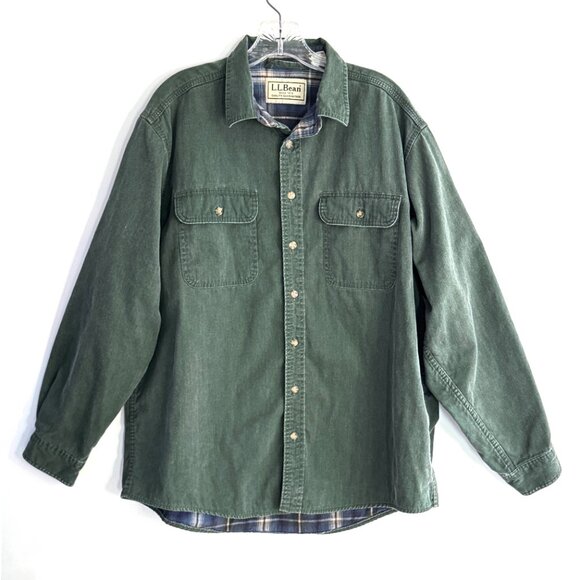 VTG LL Bean Men’s Hurricane Plaid Flannel Lined Green Canvas Shirt OMS96 Size Regular Large