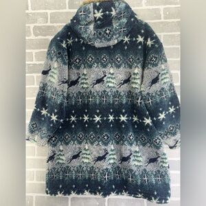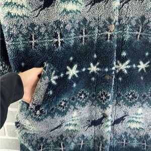 VTG LL Bean Men’s Pile Fleece Hooded Parka Reindeer Fair Isle USA Size L/XL
