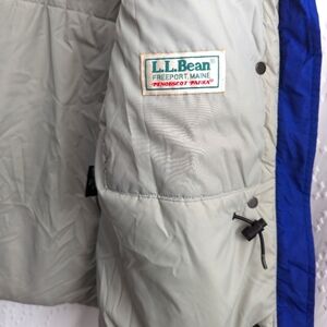 Authentic Vintage LL Bean Penobscot Parka in a Women's Medium. Beautiful purple color with royal blue accents. Has a drawstring that can cinch in the coat at the waistline. Features 3 front pockets and one interior, velcro adjustable cuffs, and button snaps over the double zipper. Features Thinsulate technology.