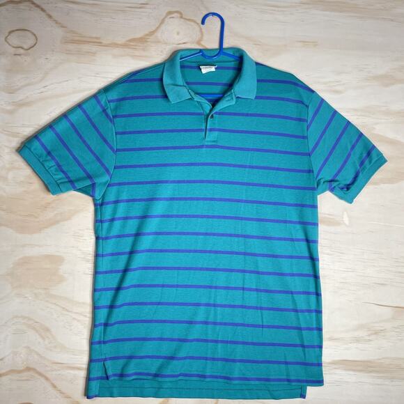 VTG L.L. Bean Polo Shirt Men’s L Teal Blue Purple Stripe Y2K 90s Preppy Casual Cotton Blend