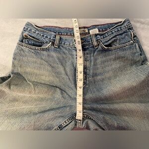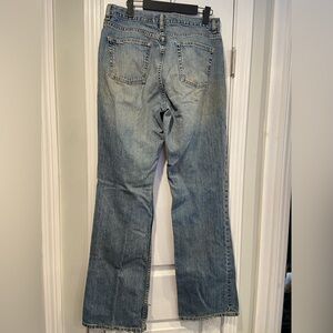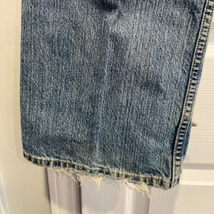 Previously worn vintage condition, jeans have some white paint stains on the front and the hem is shredded in the back
