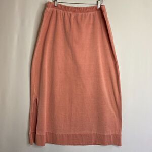 VTG LL Bean Skirt Light Rose Cotton Knit Drawstring Waist A-Line Midi Size XL