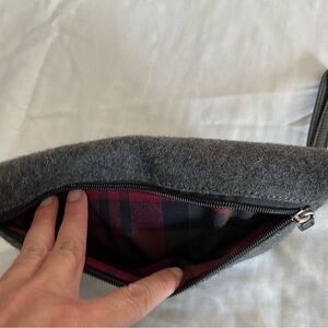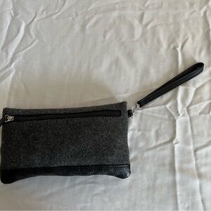 VTG L.L. Bean Small Wool Blend Leather Wristlet Purse Wallet Gray/Black EUC
