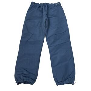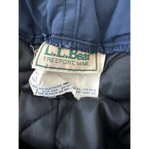 The product is a pair of vintage LL Bean snow pants in women's size Medium, in a blue color. These insulated ski snowboard pants feature a zip closure, made of nylon fabric with a polyester, nylon, cotton, and cotton blend material. Suitable for winter, fall, and spring seasons, these snow pants are machine washable and have a wide-leg design. With a retro LL Bean character and a ski theme, these snow pants are perfect for outdoor activities like skiing and snowboarding. Made in the United States, they offer a regular fit for added comfort during winter sports.