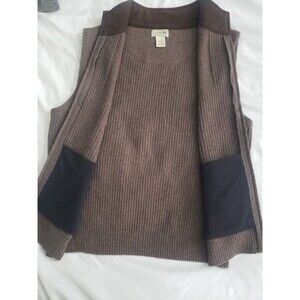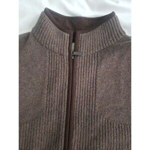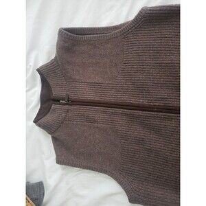 VTG LL Bean Vest Mens Medium Brown Merino Lambs Wool Full Zip Rib Knit 245457