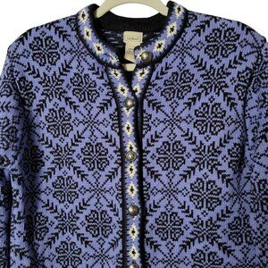 VTG L.L. Bean Women Nordic Fair Isle Cotton Metal Buttons Cardigan Sweater Small