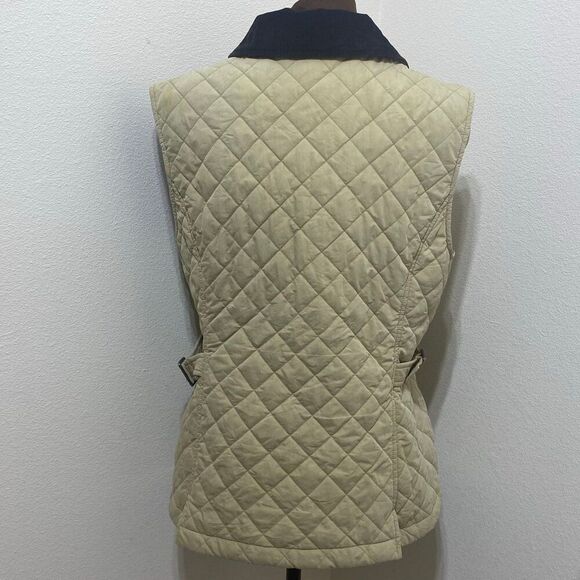 VTG LL Bean Women’s Equestrian Vest Quilted Corduroy Snaps Beige Brown