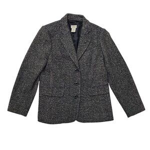 Description: VTG LL Bean Wool Cashmere Tweed Blazer B&W Dark Academia Office Womens 12P