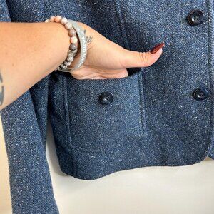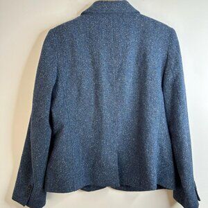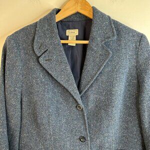 VTG L.L.Bean Blazer Womens L Navy Blue Tweed Wool Silk Blend Button Front Preppy
