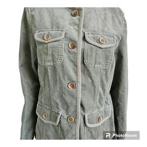 VTG L.L.Bean Petite M Jacket Long Sleeve Button Front Corduroy Olive Green