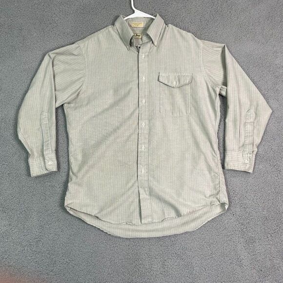 VTG L.L. Bean Shirt Men 16-32 Gray Striped Single Needle Tailored LS Button Down