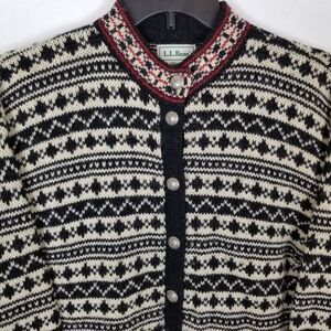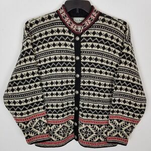 VTG L.L.Bean Women Nordic Print Wool Blend Cardigan Size M Sweater Fair Isle