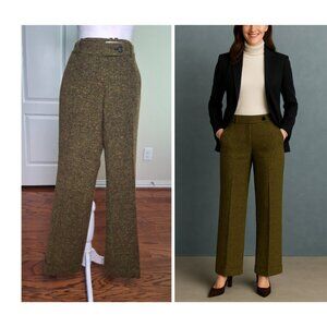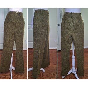 VTG LOFT Wool Tweed Bootcut Work Dress Pants Size 4 Green Gold Speckle Cuff Leg