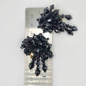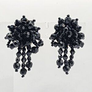 Stunning vintage clip-on earrings stamped Lous Ann. The clusters feature black, faceted beads with 3 dangles. These make an Old Hollywood statement for your special occasions, such as weddings, proms and themed parties.