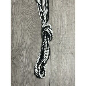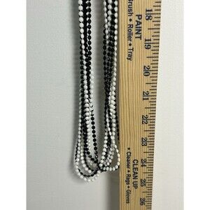 VTG LONG Multi Strand Faceted Glass Necklace Beaded Black White Gold Tone Link