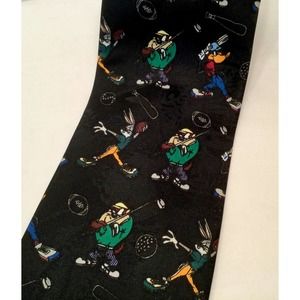 VTG LOONEY TUNES NECK TIE SPORTS BLACK BUGS BUNNY DAFFY TAZMANIAN DEVIL GOLF.
